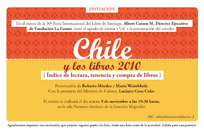 El próximo martes 9 de noviembre se realizará el lanzamiento de la tercera versión del estudio Chile y los Libros, iniciativa de Fundación La Fuente en alianza con Adimark-GFK, y en la cual participo.