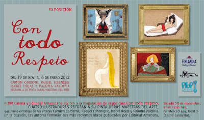 Si viven en Santiago o están de paso por la ciudad, les recomiendo que se den una vuelta por la galería Plop, para disfrutar de la muestra "Con todo respeto" de las ilustradoras chilenas: Isabel Hojas, Paloma Valdivia, Carmen Cardemil y Raquel Echeñique.